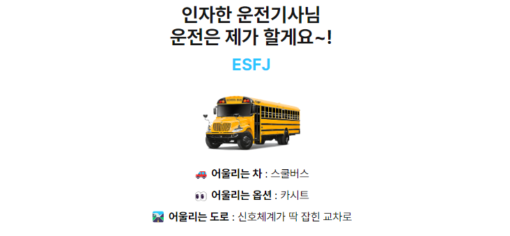 저는 ESFJ로 인자한 운전기사님이 나왔습니다~~